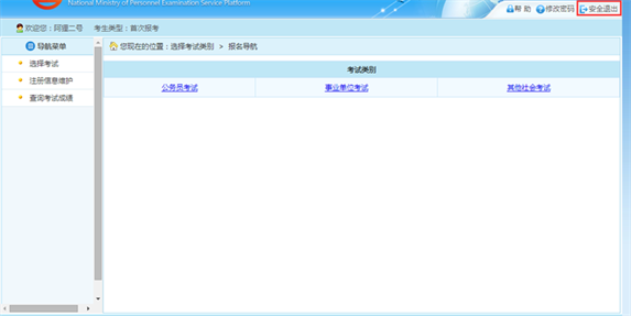 通過(guò)點(diǎn)擊系統(tǒng)右上角的“安全退出”按鈕,如下圖所示: