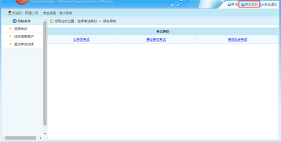 在該界面可以對(duì)考生的登錄密碼進(jìn)行修改。