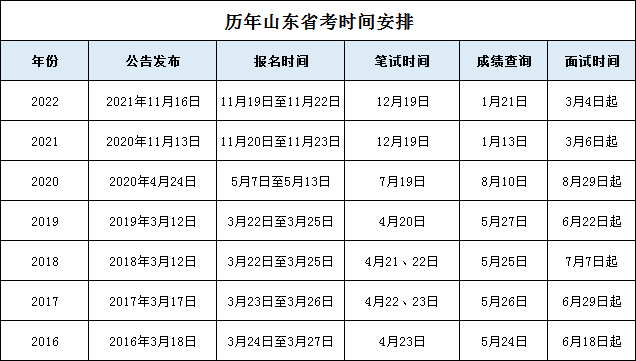 下附近年山東公務(wù)員考試時(shí)間安排:
