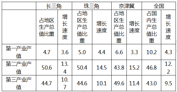 表 2010年三大經(jīng)濟(jì)圈產(chǎn)業(yè)結(jié)構(gòu)及增長(zhǎng)速度(%)