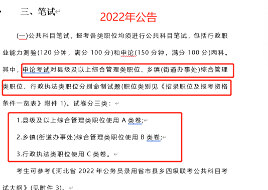 在2022河北省考職位表中,最后一欄新增了申論試卷類型,分為A/B/C卷,大家可以依據(jù)自己報(bào)考的崗位,有針對(duì)性的進(jìn)行申論的學(xué)習(xí)。
