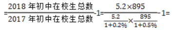 在這道題目當(dāng)中,我們發(fā)現(xiàn)全國初中在校生=初中學(xué)校數(shù)量×平均每所學(xué)校初中在校生,而題干當(dāng)中給出了這兩個指標(biāo)當(dāng)年的值和增長率,讓我們求就是這兩個指標(biāo)相乘之后的增長率,全國初中在校生同比增長率