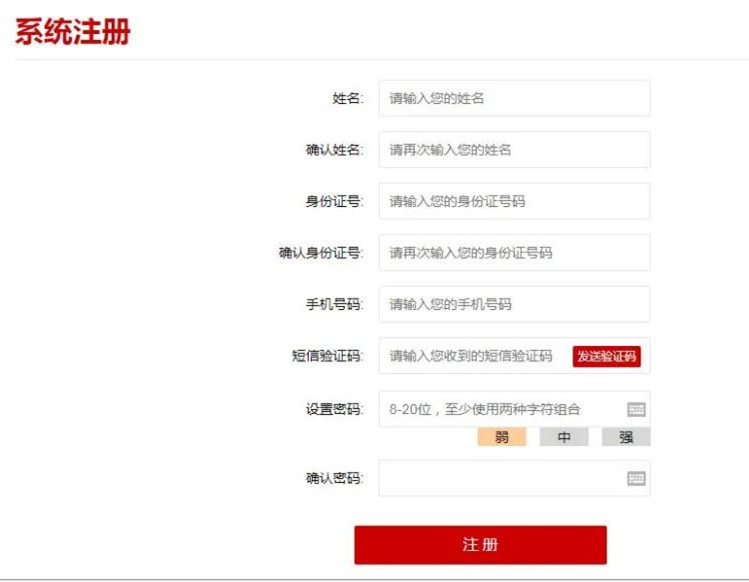 依次填寫各項(xiàng)信息,注意檢查好姓名、身份證號(hào)和手機(jī)號(hào)是否正確,記住登錄密碼再點(diǎn)擊注冊(cè)按鈕完成注冊(cè)。