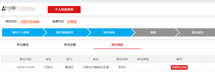 填報(bào)成功后進(jìn)行報(bào)考誠信承諾書的認(rèn)真閱讀并進(jìn)行報(bào)考職位的核對(duì),確定報(bào)名信息后進(jìn)入等待審核狀態(tài),如審核不通過則需根據(jù)招考單位寫出的審核理由返回修改完善個(gè)人信息或更改報(bào)考職位。