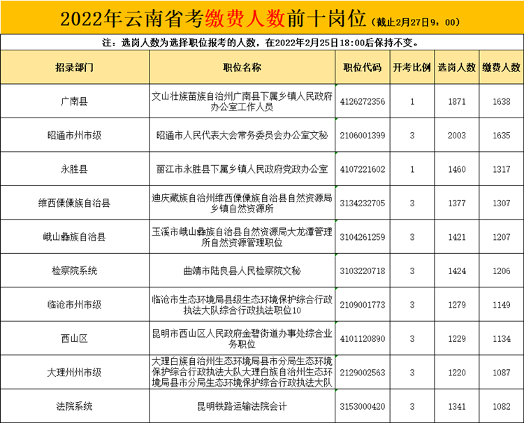 截止2月27日9點(diǎn),2022云南省考報(bào)名繳費(fèi)近30萬人