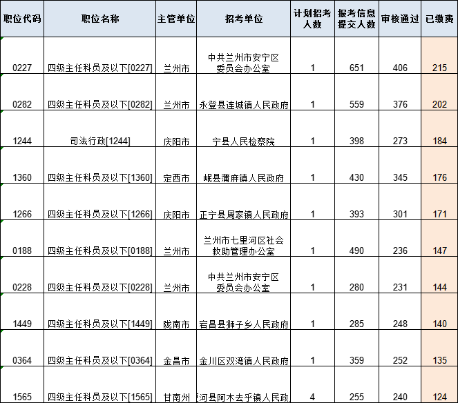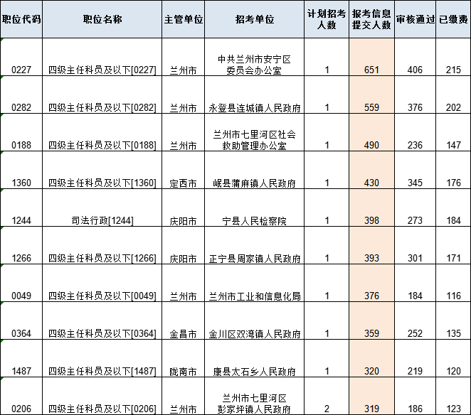 以下為報(bào)名人數(shù)最多的前十崗位: