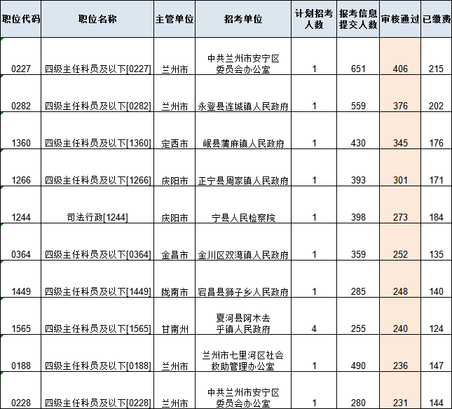截止3月1日17時(shí),2022年甘肅公務(wù)員考試共有39877人提交報(bào)名,25200人通過審核,15069人繳費(fèi),81個(gè)崗位無(wú)人報(bào)考,具體數(shù)據(jù)詳見附件: