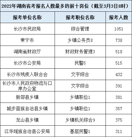 2022年湖南公務(wù)員考試報(bào)名數(shù)據(jù)(3.3 8:00)