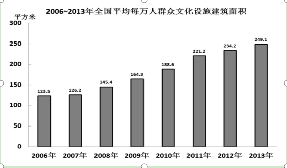 C.2013年全國人均群眾文化設(shè)施建筑面積比2006年翻了一番