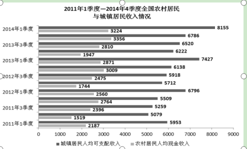 C.2013年1季度城鎮(zhèn)居民人均可支配收入環(huán)比增長了三成多