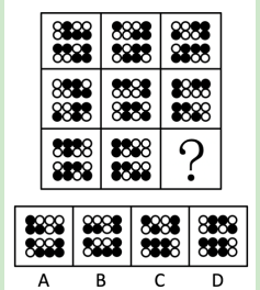 134.以下哪個(gè)餅圖最能準(zhǔn)確反映2021年1—2月C市天然氣用量中,民用氣(白色)、CNG用氣(黑色)和工業(yè)用氣(斜線)的占比關(guān)系?( )