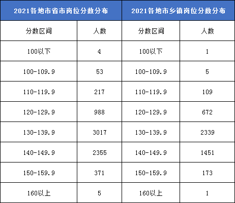 左邊是普通崗位,右邊是鄉(xiāng)鎮(zhèn)崗位。根據(jù)以上表格可知,不管是鄉(xiāng)鎮(zhèn)崗位還是普通崗位,分數(shù)都集中在130-139.9分之間,那么可想而知,在面試過程中競爭壓力有多大,各位考生一定要認真?zhèn)淇肌?/p>