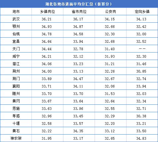 二、2021湖北省考地市各崗位進面平均分(不含省直)