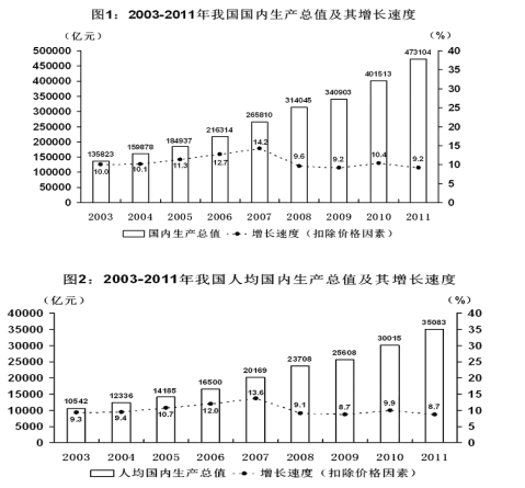 (1)2004-2011年八年,我國國內(nèi)生產(chǎn)總值與人均國內(nèi)生產(chǎn)總值保持相同的變動態(tài)勢
