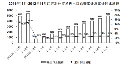 (1)2011年12月江蘇對外貿(mào)易進(jìn)出口總額不足2011年的10%