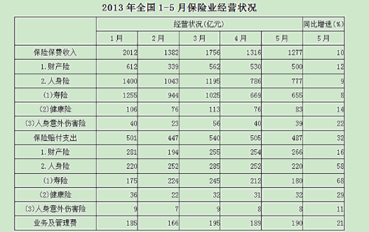 114.關(guān)于2013年1—5月保險(xiǎn)業(yè)經(jīng)營(yíng)狀況,能夠從上述資料中推出的是( )