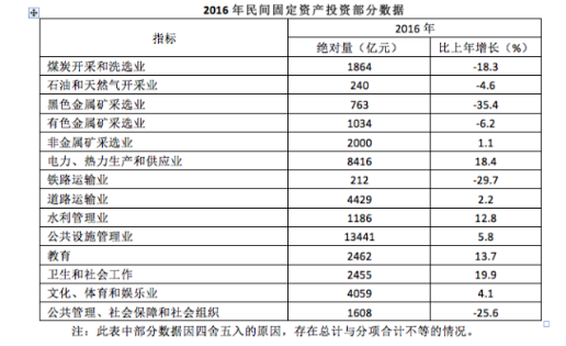 2016年,全國(guó)民間固定資產(chǎn)投資365219億元,比上年名義增長(zhǎng)3.2%,增速比1—11月份提高0.1個(gè)百分點(diǎn)。民間固定資產(chǎn)投資占全國(guó)固定資產(chǎn)投資的比重為61.2%,比1—11月份降低0.3個(gè)百分點(diǎn),比上年降低3個(gè)百分點(diǎn)。