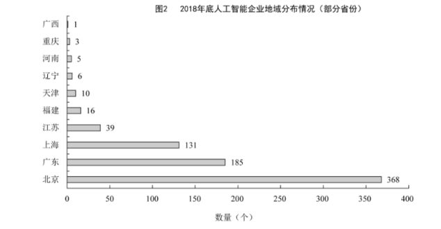 截至2018年底,中國(guó)人工智能市場(chǎng)規(guī)模約為238.2億元,同比增長(zhǎng)率達(dá)到。從中國(guó)人工智能企業(yè)地域分布情況來(lái)看,北京企業(yè)數(shù)量最多,企業(yè)數(shù)量為368家;其次為廣東,人工智能企業(yè)數(shù)量為185家;排名第三的是上海,數(shù)量為131家。