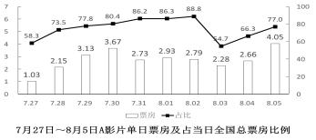 ③8月5日B影片票房占當(dāng)日全國(guó)總票房的15%以上