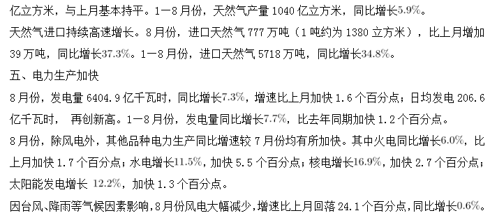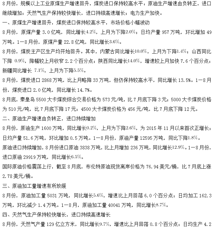 B.本年度8月份,原煤、天然氣、電力的生產(chǎn)同比均增長