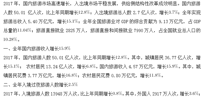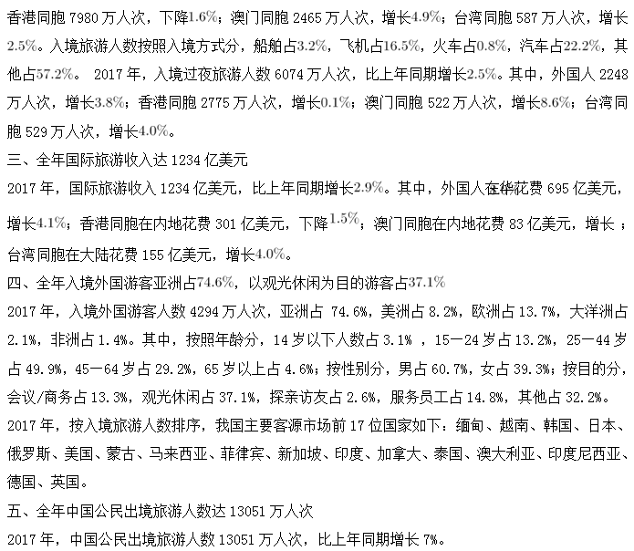 B.2017年,國際旅游收入五成以上由外國人在華花費(fèi)實(shí)現(xiàn)