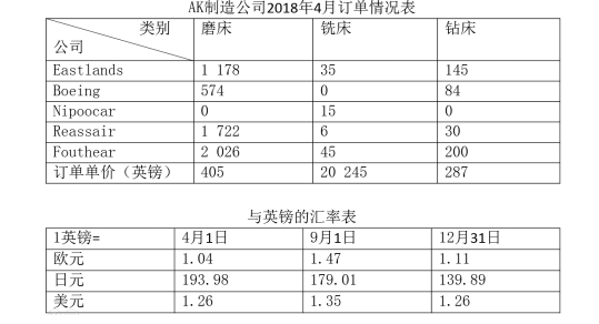 115.AK制造公司銑床的利潤為售價的3.9%,磨床的利潤為售價的5.1%,則關(guān)于上述所有磨床和銑床訂單按英鎊計價的利潤額闡述正確的有( )個。