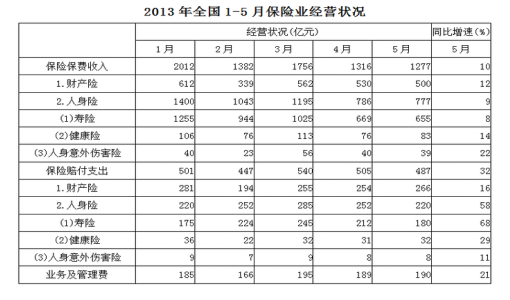 120.關(guān)于2013年1—5月保險(xiǎn)業(yè)經(jīng)營(yíng)狀況,能夠從上述資料中推出的是:( )