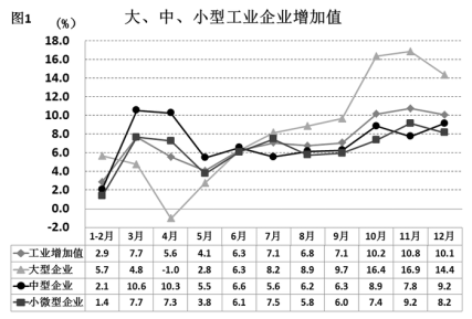 A、小微型企業(yè)對(duì)10—12月的月度同比增速回升拉升作用最大