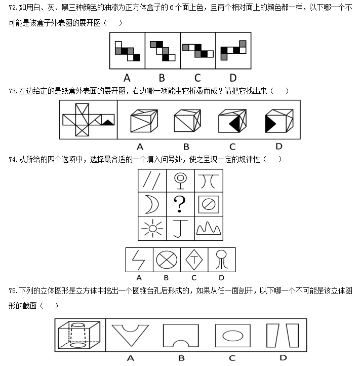 二、言語(yǔ)理解,共35題,本部分包括表達(dá)與理解兩方面的內(nèi)容,請(qǐng)根據(jù)題目要求選出答案。