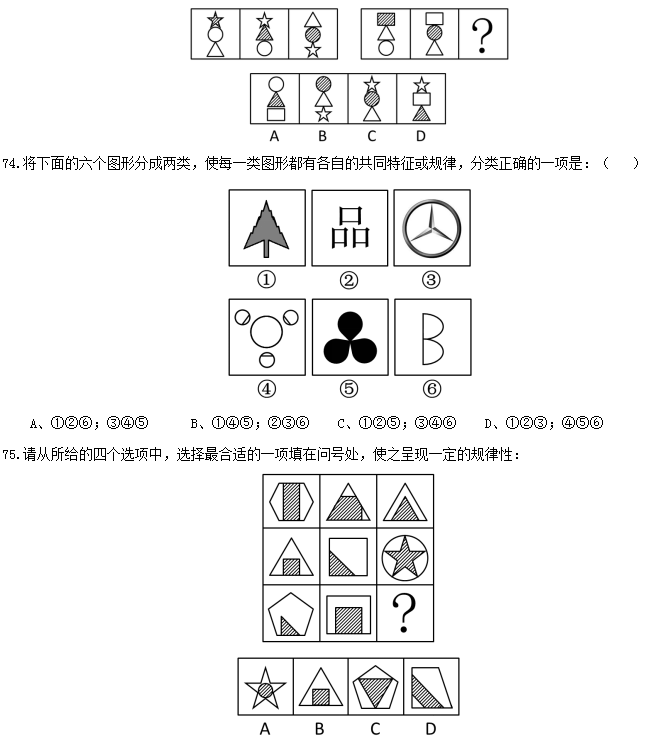 二、言語理解,共40題,本部分包括表達(dá)與理解兩方面的內(nèi)容,請(qǐng)根據(jù)題目要求選出答案。