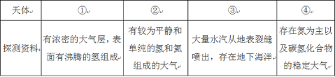 13.“旅行者1號(hào)”空間探測(cè)器經(jīng)過36年的人類星際探索,沿途探索①木星②土星③土衛(wèi)二④土衛(wèi)六是否存在生命跡象,并發(fā)回資料。閱讀表格,依據(jù)探測(cè)資料判斷將來最有可能孕育生命的天體是( )