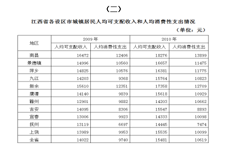 122.2010年與2009年相比,人均消費性支出增長大于可支配收入增長的是( )