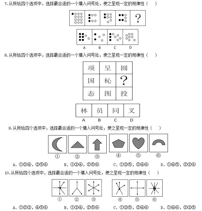 1. 從所給四個選項中,選擇最合適的一個填入問號處,使之呈現(xiàn)一定的規(guī)律性( )