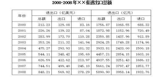 A、2001-2008年,該省每年出口總額相對上年增幅最小的年份是2001年