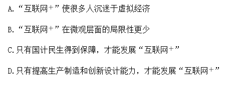 ”也就只能是空中樓閣;卻不思:只醉心于虛擬經(jīng)濟是靠不住的。越是在宏觀層面,越要充分認(rèn)識到互聯(lián)網(wǎng)的諸多局限性。如果以上為真,則以下哪項為真?( )