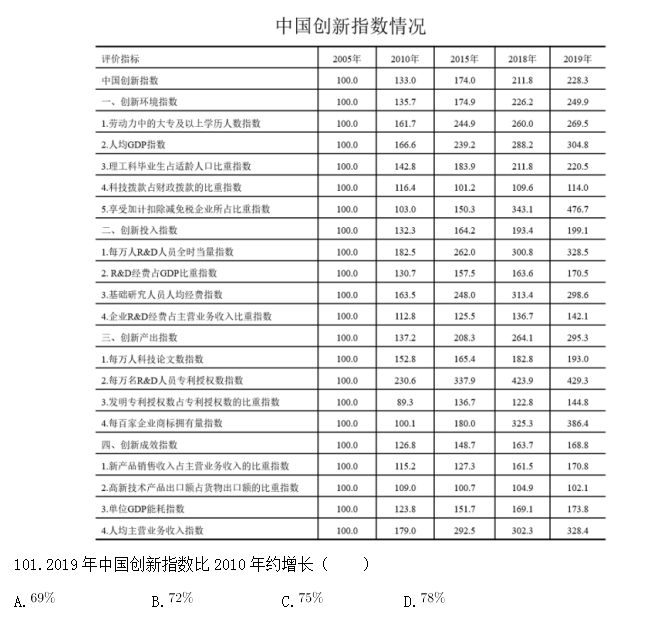 103.相比于2015年,2018年創(chuàng)新投入指數(shù)4個評價指標(biāo)中增幅在