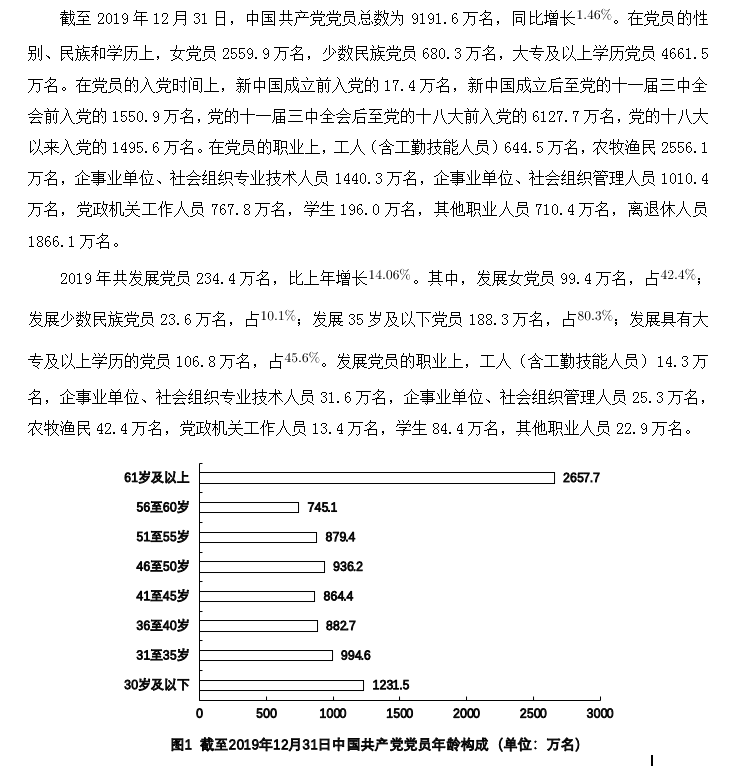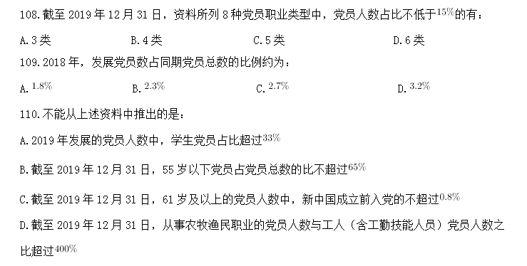 107.截至2019年12月31日,新中國成立后至黨的十八大前入黨的人數(shù)約是其余時間入黨人數(shù)的: