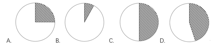 106.若陰影部分代表大專及以上學(xué)歷黨員人數(shù),那么下列哪幅圖最能反映截至2019年12月31日大專及以上學(xué)歷黨員占黨員總數(shù)的比例?