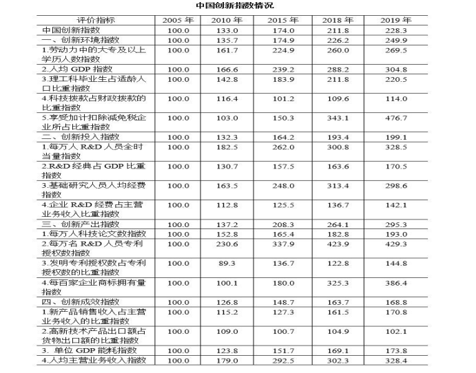 B.2019年創(chuàng)新成效指數(shù)4個評價指標(biāo)中有2個同比增速高于8%
