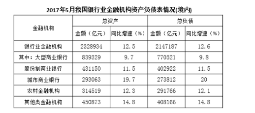 104.在2017年5月我國(guó)銀行業(yè)金融機(jī)構(gòu)資產(chǎn)負(fù)債表中,下列哪一項(xiàng)的總資產(chǎn)同比增長(zhǎng)額最高?( )