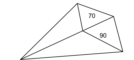 21. 如圖所示,公園有一塊四邊形的草坪,由四塊三角形的小草坪組成。已知四邊形草坪的面積為480平方米,其中兩個小三角形草坪的面積分別為70平方米和90平方米,則四塊三角形小草坪中最大的一塊面積為多少平方米?( )