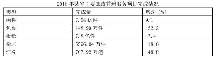 B.2016年該省主要郵政普遍服務項目均出現(xiàn)下滑