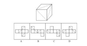 33、下列選項(xiàng),不可能是所給立方體展開圖的是( )。