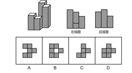 55.下方分別是一個(gè)由長(zhǎng)方體堆積而成的立體圖形和該立體圖形的左視圖、后視圖,那么該立體圖形的俯視圖是( )