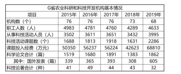 68.2015-2019年,G省農(nóng)業(yè)科研和科技開發(fā)機(jī)構(gòu)課題投入經(jīng)費(fèi)平均每年增加( )萬元。