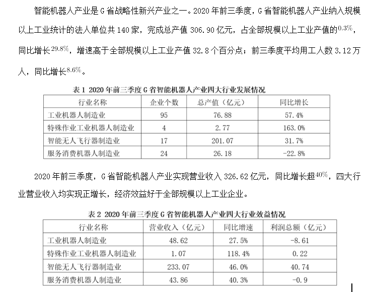 D.2020年前三季度,G省智能機(jī)器人產(chǎn)業(yè)中利潤(rùn)率最高的行業(yè)是特殊作業(yè)工業(yè)機(jī)器人制造業(yè)