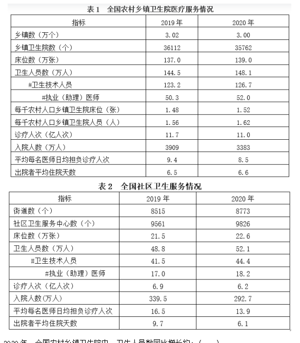 A.與2019年相比,2020年全國(guó)鄉(xiāng)鎮(zhèn)衛(wèi)生院衛(wèi)生技術(shù)人員和社區(qū)衛(wèi)生服務(wù)中心衛(wèi)生技術(shù)人員均有所增加