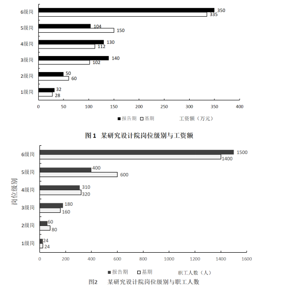 某研究設(shè)計院向不同崗位級別職工支付的工資額以及該院職工人員結(jié)構(gòu)資料分別如圖1和圖2。根據(jù)資料回答問題。