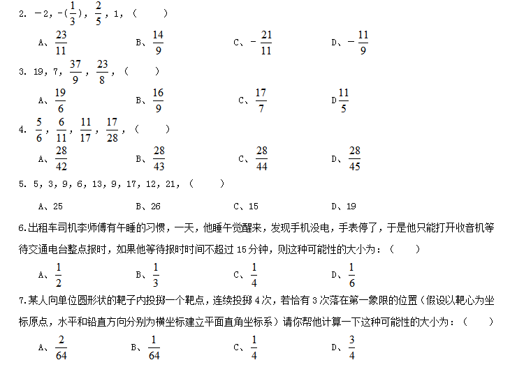 一、數(shù)量關(guān)系,共10題,本部分包括數(shù)字推理、數(shù)理計算。