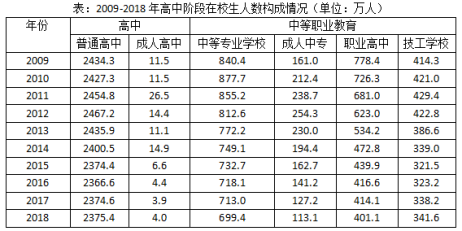 B、2009年,高中在校生人數(shù)占高中階段在校生總?cè)藬?shù)一半以上